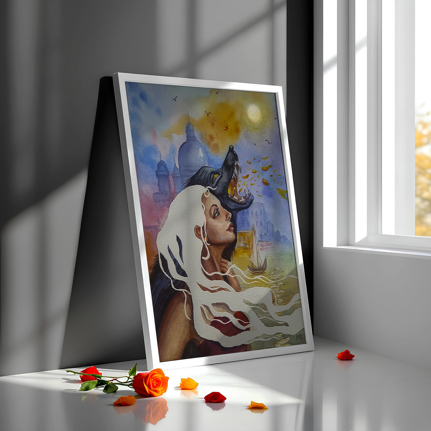 Я очень люблю гуашь из-за её изобразительных возможностей и бархатистой структуры поверхности рисунка. Акварель я осваивала в последнюю очередь, и этот материал покорил меня своей пластичностью, послушностью и выразительностью. Я влюбилась в акварель до одержимости. Каждый день рисую, осваиваю акварельные техники и приемы. Наряду с сюжетными темами мне понравилось писать акварелью пейзажи и архитектуру. Здесь приведены примеры того, как картина может смотреться в интерьере. Однако при заказе вы получите работу, не оформленную в раму. Оформление можно заказать дополнительно, напишите об этом в примечании к заказу.